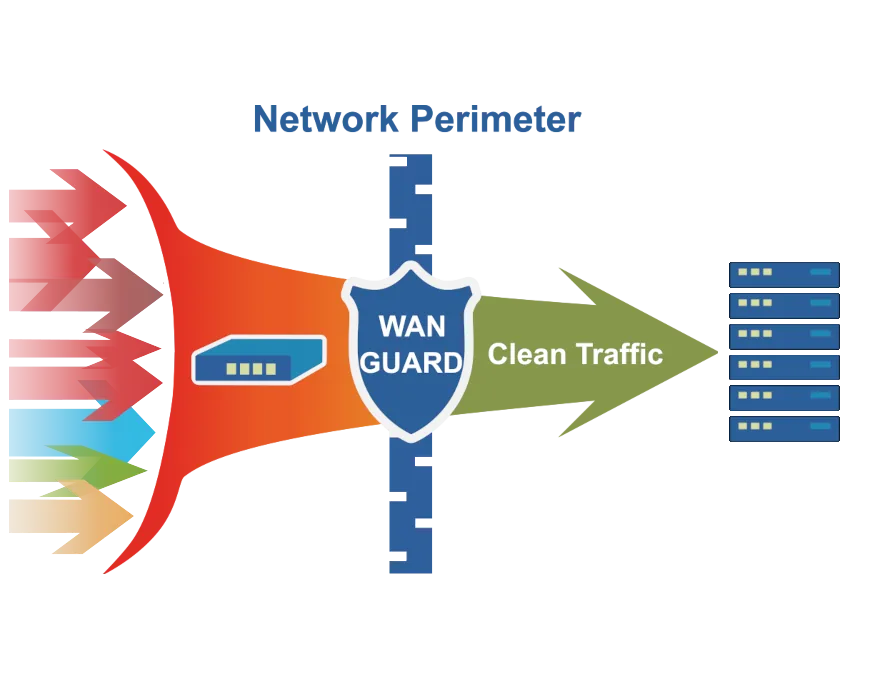 • Wanguard extends Wansight with DDoS detection and DDoS mitigation capabilities. It protects networks and critical services from Distributed Denial of Service attacks by filtering malicious traffic through dynamic rules applied to software or hardware firewalls at the network perimeter. It supports automated response mechanisms, RTBH, BGP Flowspec, traffic diversion, scripting, and clustering for scalable, resilient protection.